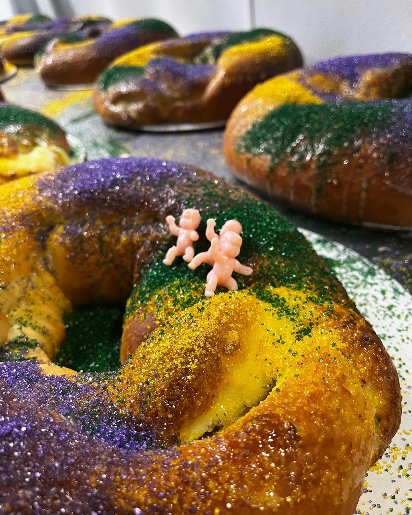 As is tradition, each cake includes a toy baby inside.